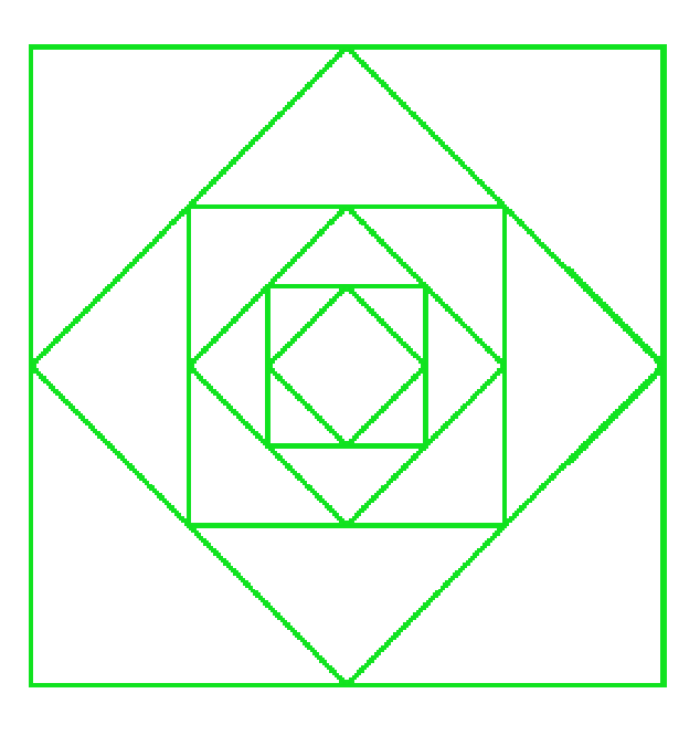 Tracer le carré extérieur de côté, puis tracer les n carrés intérieurs dont les sommets sont placés sur les milieux des côtés du carré précédent.